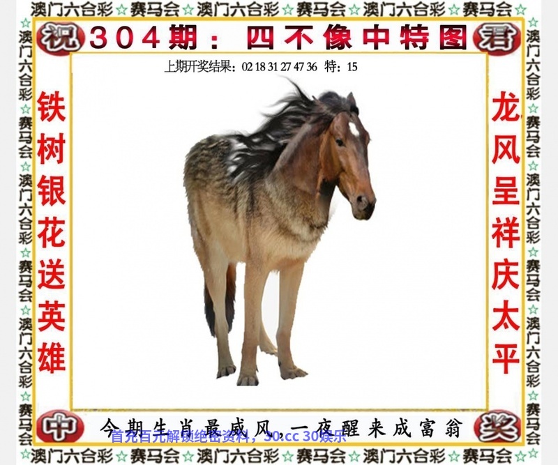 | 304期:七肖✬【马猴虎龙鸡猪羊】开:马48准 |