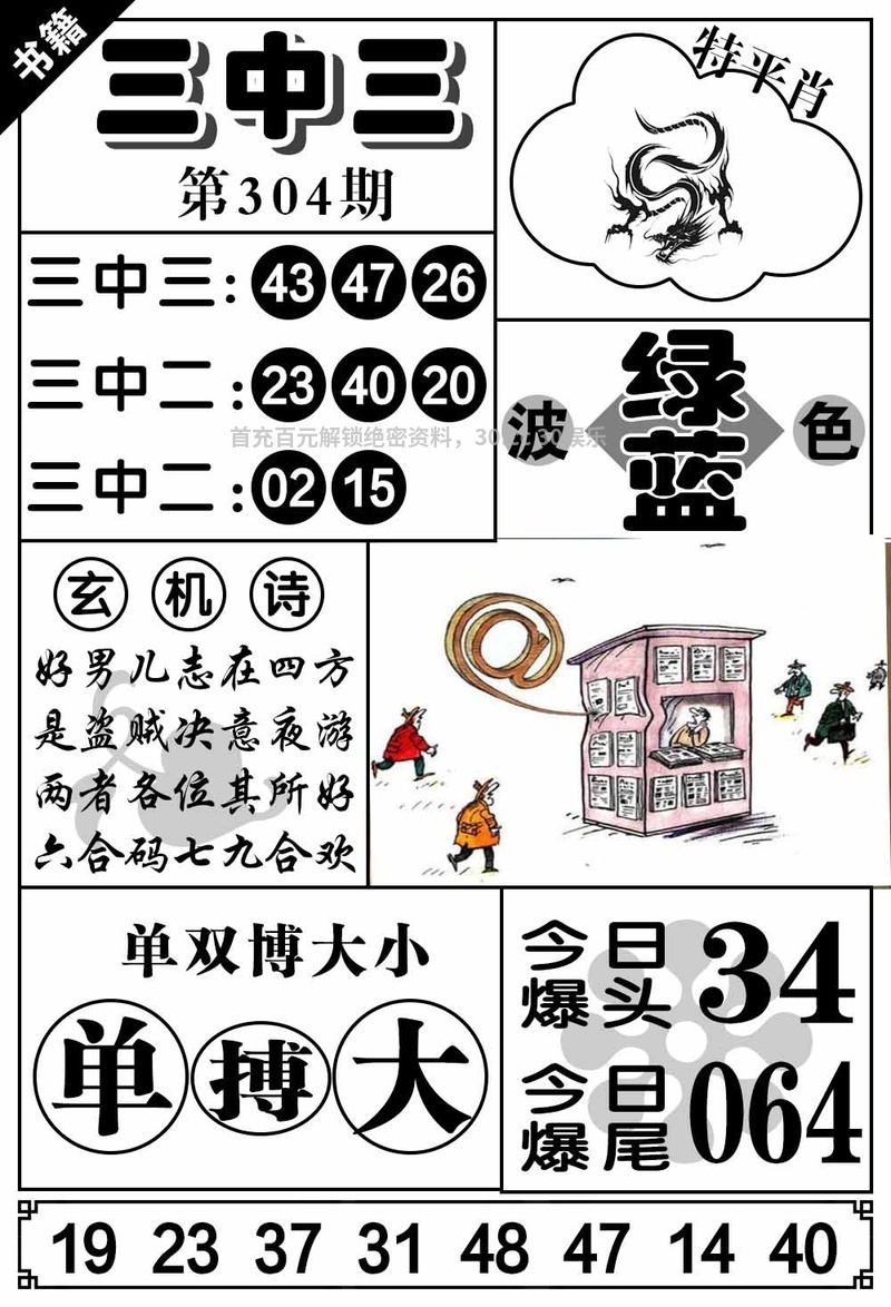| 309期:单双三肖【单肖+马虎龙】开:發00准 |